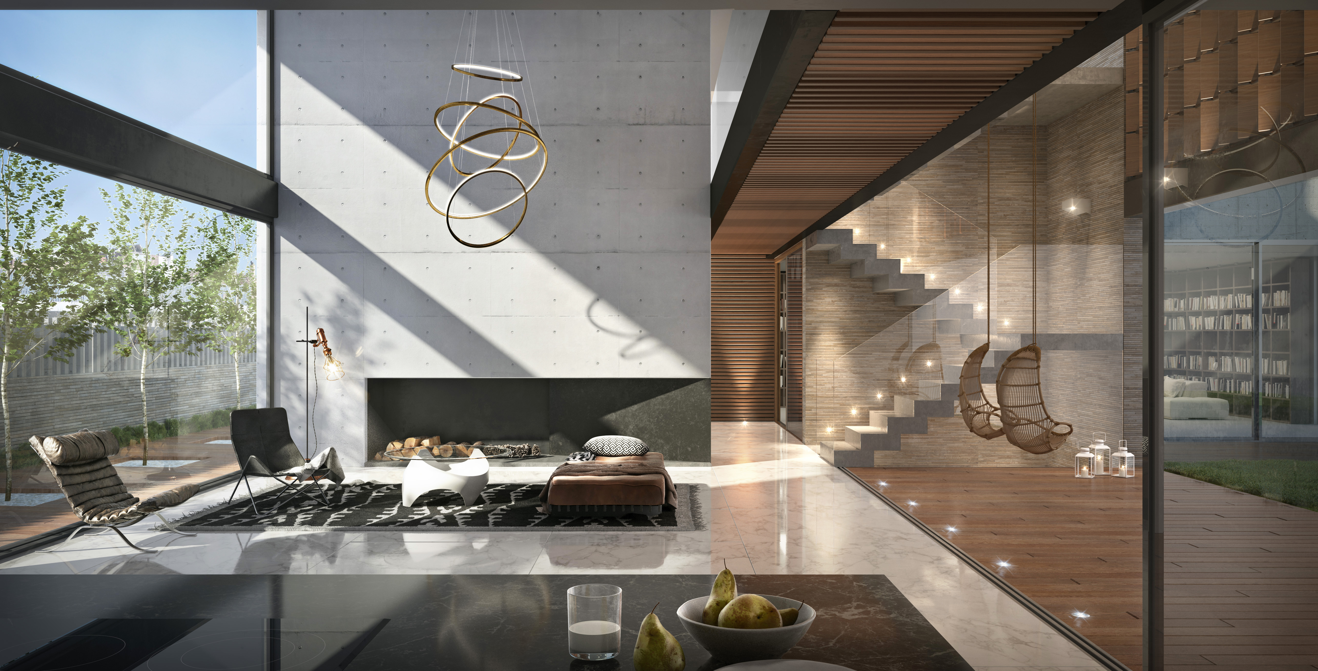 Volúmenes de formas puras, empleo de materiales nobles como el acero , la madera, la piedra o el vidrio sobre planos de hormigón en una búsqueda constante de sensaciones en los que el dominio de la luz natural, como protagonista, intensifica la riqueza espacial. Hogares únicos, viviendas irrepetibles.